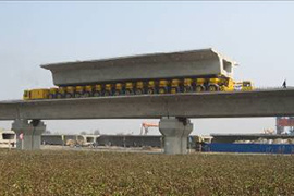 - 國內首臺城市輕軌無預埋架橋機TP70應用于無錫輕軌