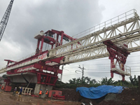 通聯600t節段拼裝接橋機在印尼雅加達工地順利完成第一片梁的拼裝。